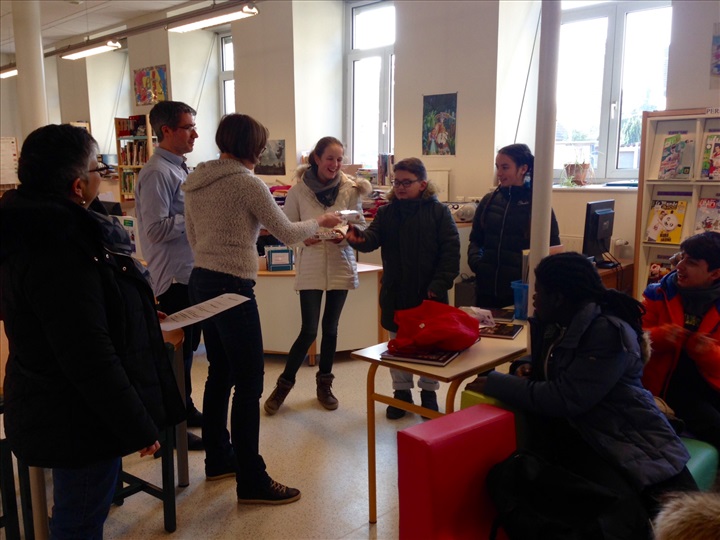 Parmi la quarantaine d'élèves inscrits, une dizaine a été récompensée par Madame Blois le 22.02 au CDI, parmi lesquels le grand gagnant, Thomas Bracq (5B), ainsi que Julien Burgunder (4A), Jonathan Kadi, Célia Dietsch, Bargot Burglen (4B), Nathaelle Tyrode, Clémence Bornet, Alexis Soares (5A), Célia Schonké (5B), Maxens Hoffner (5C). Bravo à tous! |