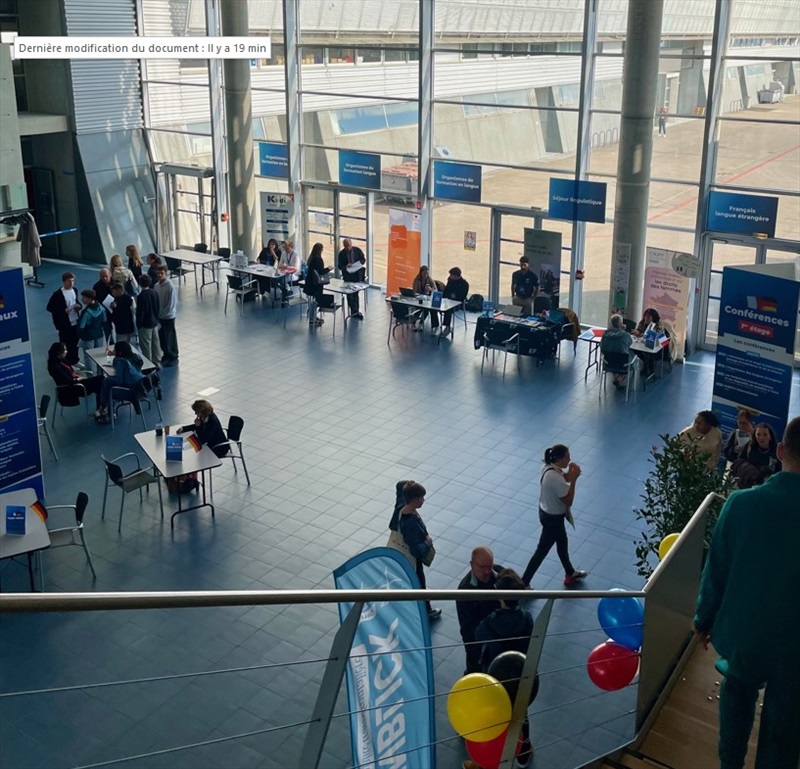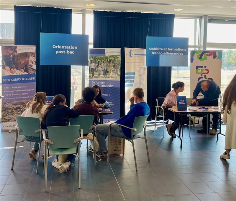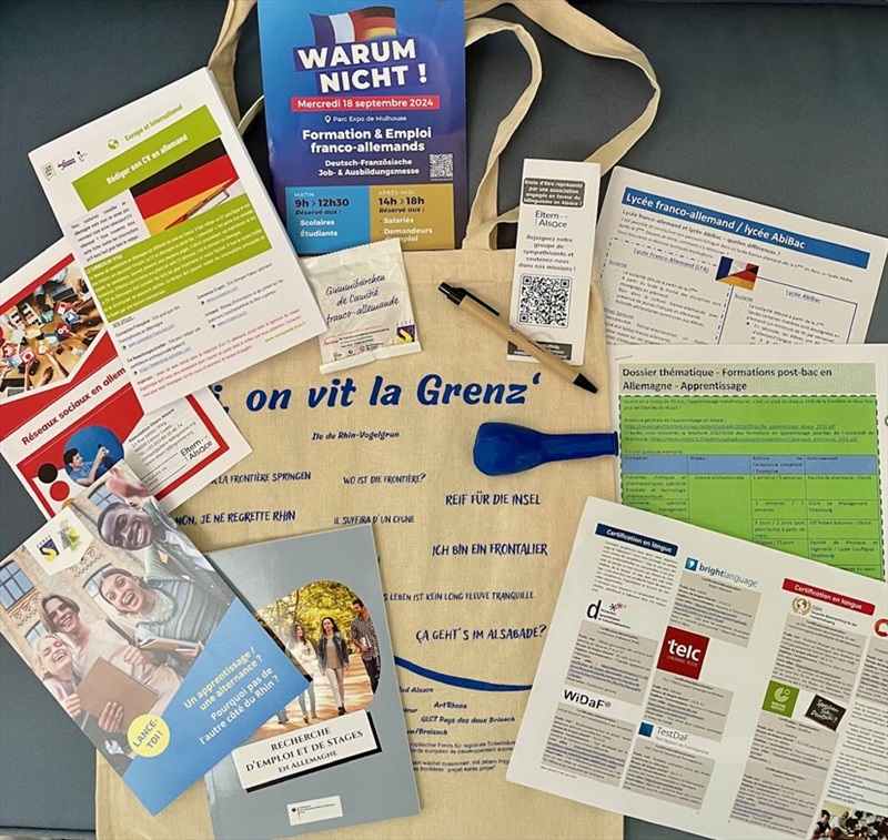 Le 18 septembre 2024, une vingtaine de 4e & 3e du collège Rémy Faesch et autant d'élèves de 1ère du lycée Scheurer Kestner de Thann se sont retrouvés pour une sortie au salon « Warum nicht? » de Mulhouse, salon des formations et emplois franco-allemands. |