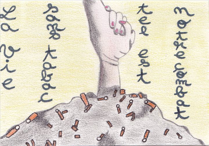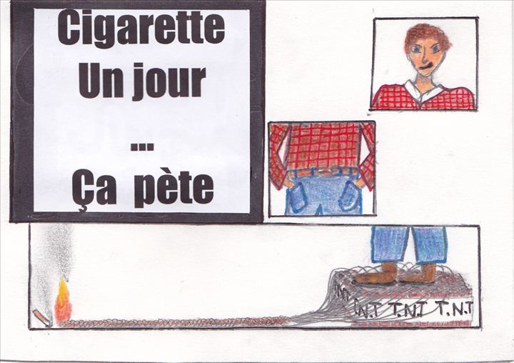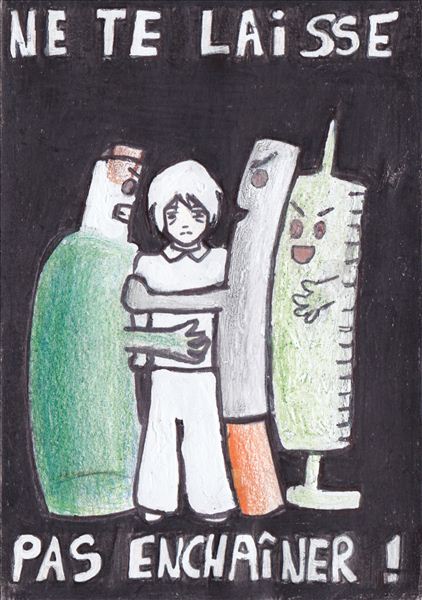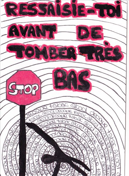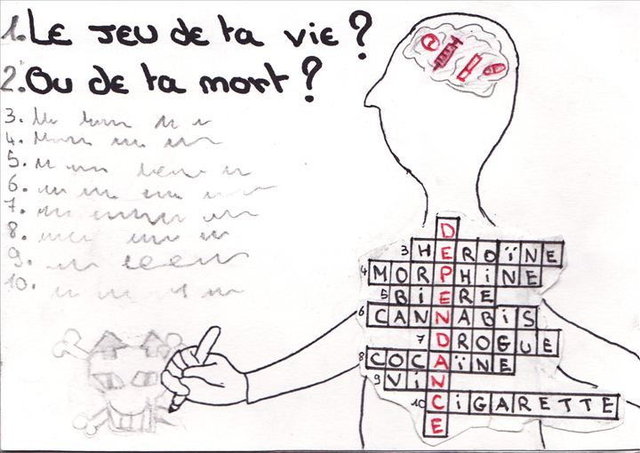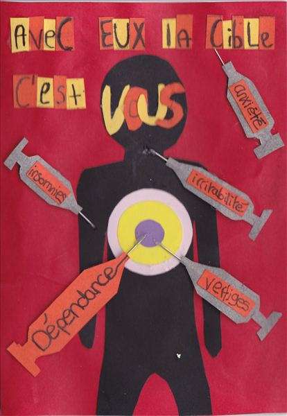 Comme chaque année, les élèves de Mme Gangloff participent au concours départemental autour du thème des addictions (drogues, alcool, tabac, etc...). Cette année les élèves de 4ème ont eu à plancher sur un support plus petit qu'à l'accoutumée: une carte postale. En tout cas ce nouveau support n'aura pas bridé leur imagination, comme vous pourrez le constater ci-dessous. Voici un échantillon de quelques unes des cartes qui vont concourir. Si vous souhaitez les voir toutes, vous pouvez passer au CDI où elles sont exposées en attendant leur expédition aux organisateurs du concours. Cliquer sur la photo qui vous intéresse puis cliquer avec la souris sur la partie droite de la photo (bouton "Next") pour la photo suivante, ou bien sur la partie gauche de la photo (bouton "Prev") pour revenir à la photo précédente. |