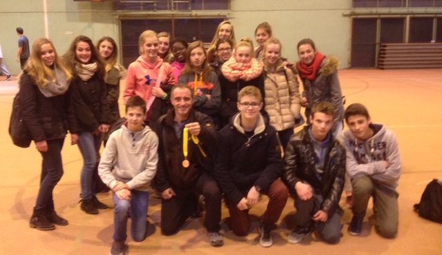 Cette année encore la section athlétisme a participé aux championnats académiques d'athlétisme en salle. A la clé pour le collège, une médaille au lancer de poids avec du bronze pour Sarah Chalgoumi, Damien Diemer, Paul Laurent et Antoine Depoire ! Le collège termine également 6eme en vitesse. Encore bravo à tous les élèves ! |