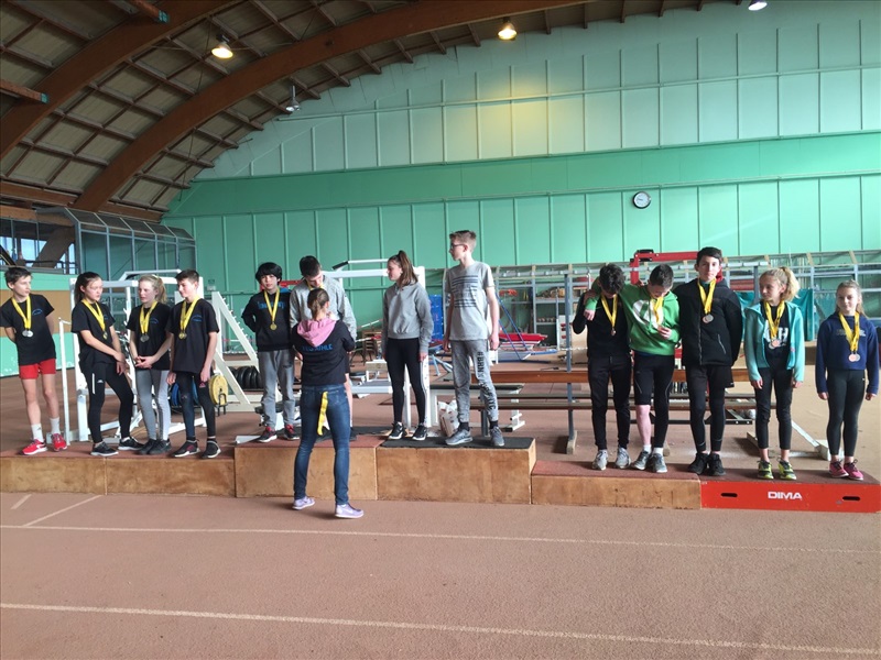 Les élèves de la section athlétisme du collège, entraînée par M. Roussel est arrivée 1ère au championnat académique indoor (benjamins mixtes).