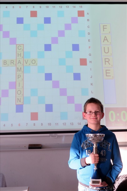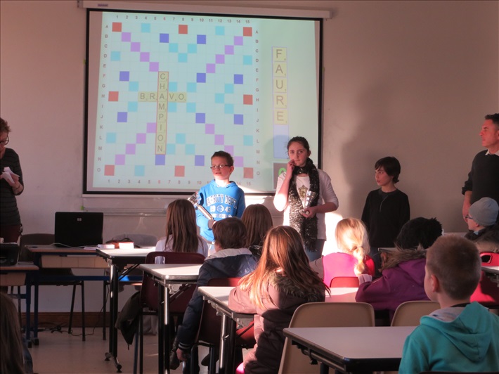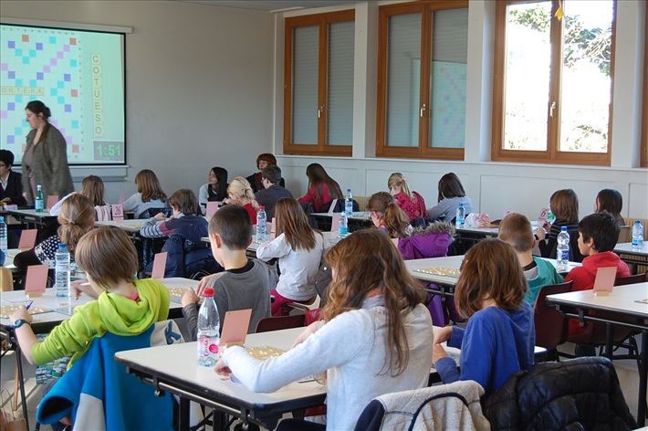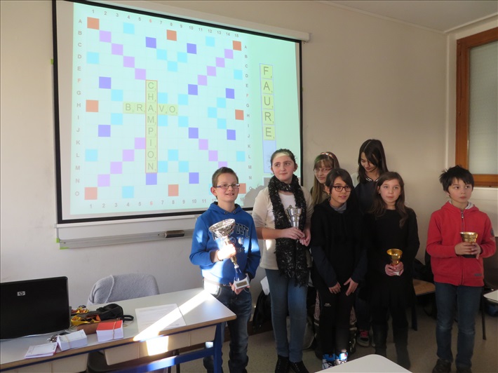 Les élèves de 5A et 5C ont participé au concours de scrabble scolaire en décembre, peu de temps avant les vacances, avec leur professeur de français Mme Salomon. |