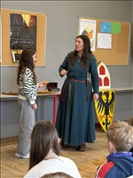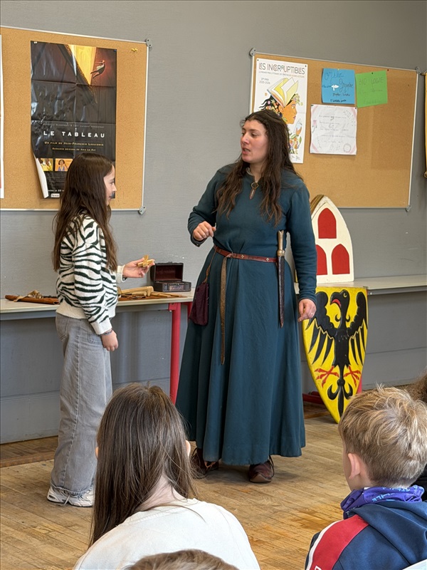 Le jeudi 15 janvier, les trois classes de 5ème ont eu la surprise de faire un saut dans le passé, au moyen-âge plus précisément. Grâce à Reinhardt et à Brunehild, ils ont pu apprendre comment un château alsacien était attaqué et défendu, comment on vivait à cette époque (et revoir bon nombre d’idées reçues à ce sujet), comment on se soignait ; ils ont aussi décrit des blasons et assisté à des combats. Selon les élèves, la journée fut intéressante et drôle ! |