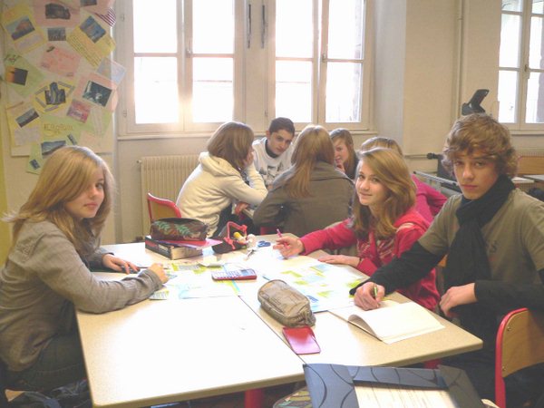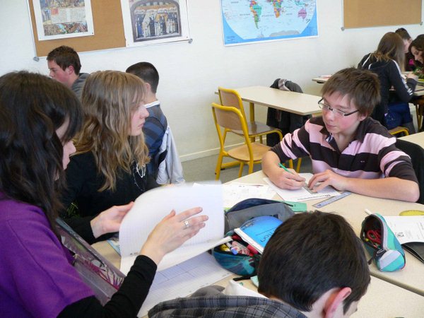 Comme chaque année le collège Faesch a participé à l'opération Maths sans frontières. Après avoir gagné deux belles sorties (Europa Park et le Parc de Eaux Vives) l'an passé et l'année précédente, le collège était représenté pour l'édition 2010 par les classes de 3eA, C et D. Vous retrouverez ci-dessous quelques photos ainsi que quelques films réalisés par Mme Burget pour immortaliser la séance de "brainstorming" collectif. Cliquer sur la photo qui vous intéresse puis cliquer avec la souris sur la partie droite de la photo (bouton "Next") pour la photo suivante, ou bien sur la partie gauche de la photo (bouton "Prev") pour revenir à la photo précédente. |