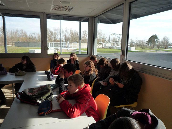 Cette station, récemment ouverte, est automatisée. Les grands principes des traitements de l’eau issue des égouts ont été présentés par le responsable de la station. Ces principes ont été abordés préalablement en cours de sciences afin de permettre aux élèves de suivre les explications (parfois complexes). |
