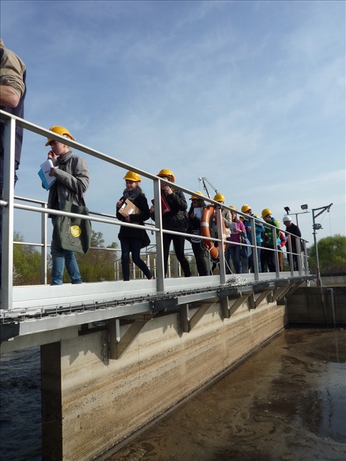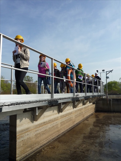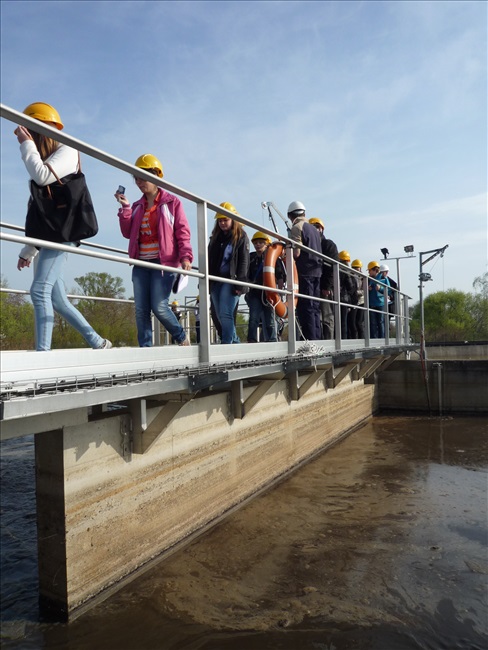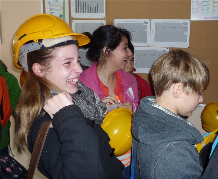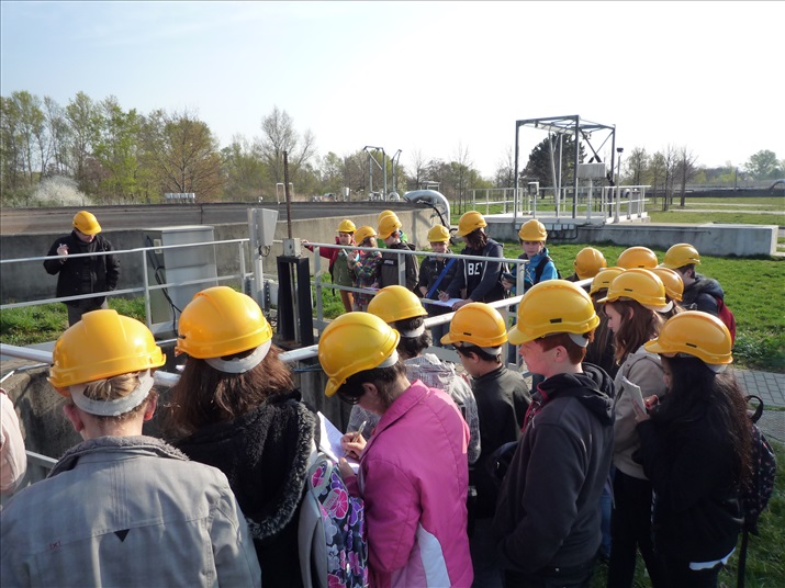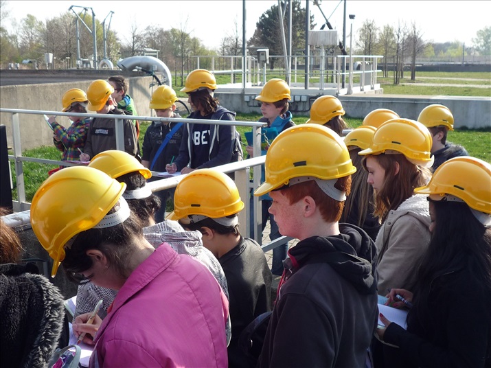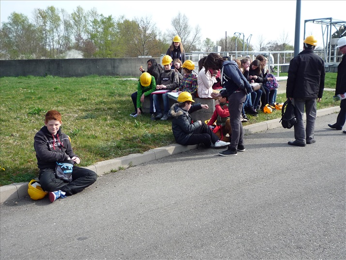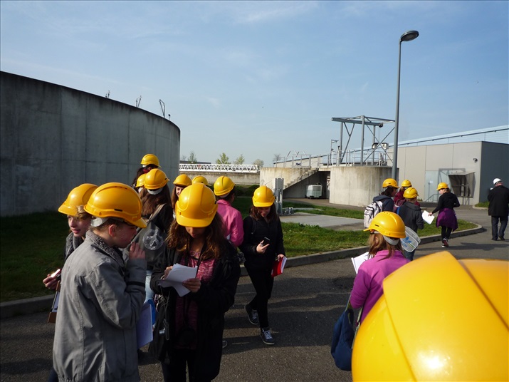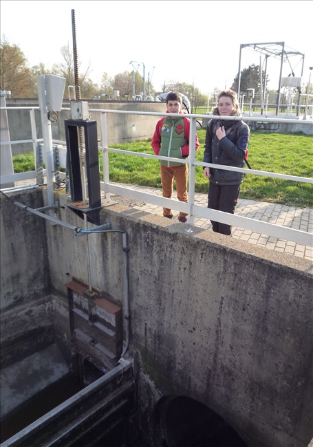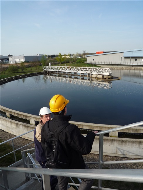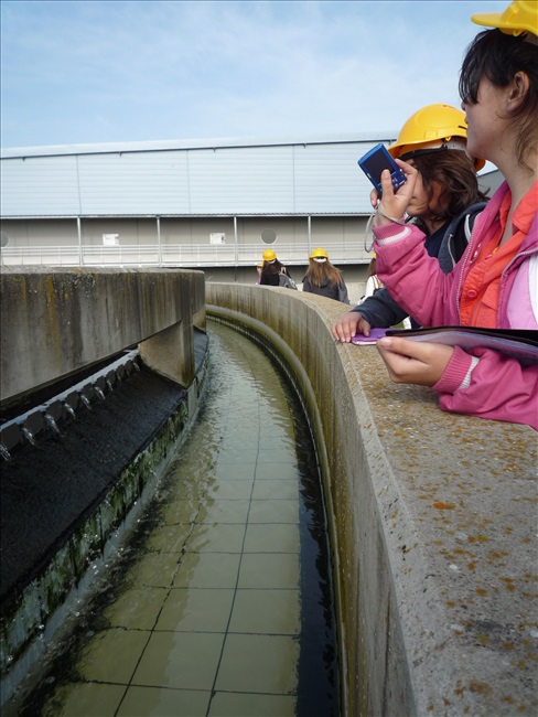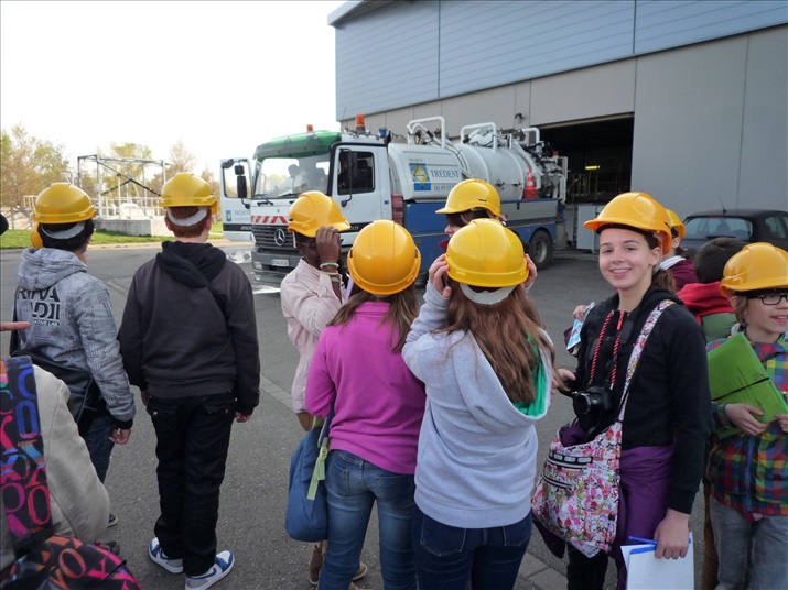 La visite débute par une vidéo au cours de laquelle on peut voir le cheminement de l'eau usée domestique, son arrivée, son traitement, puis son départ de la station d'épuration pour rejoindre la Thur. C'est ensuite par l'intermédiaire d'une promenade que les élèves, guidés par Monsieur Schminck et un technicien, découvrent et observent, un bloc-notes à la main, successivement plusieurs installations où l'eau subit différents traitements. |