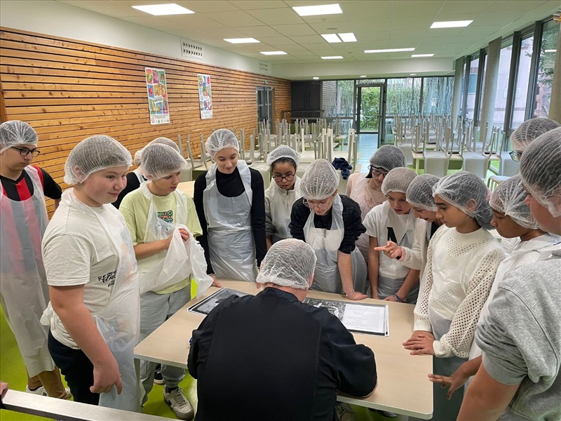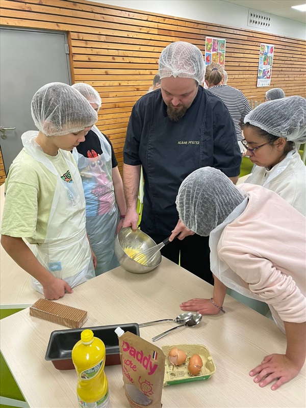 Dans le cadre de la semaine du goût, à l’initiative du chef du restaurant scolaire, une quinzaine d’élèves du collège ont eu la chance de participer à un atelier de cuisine. |