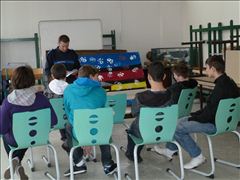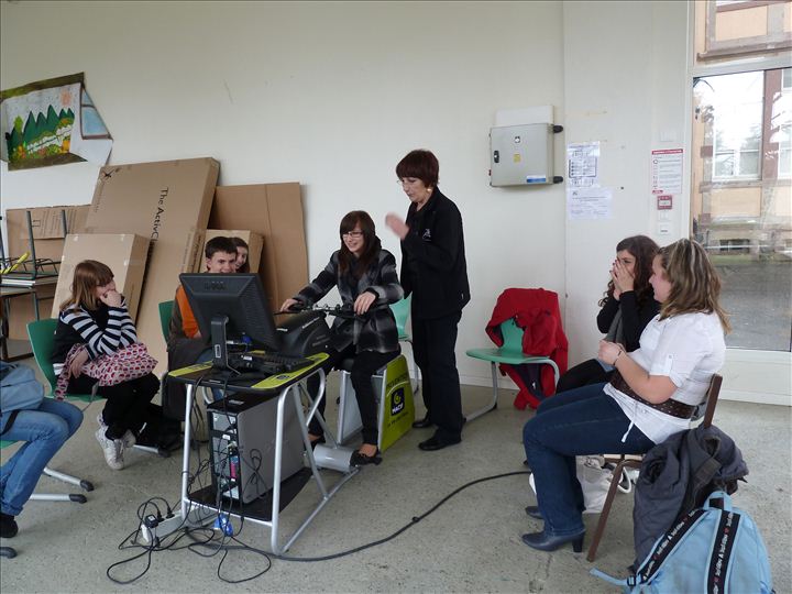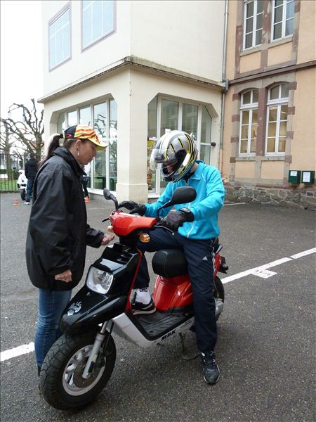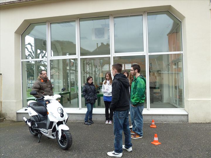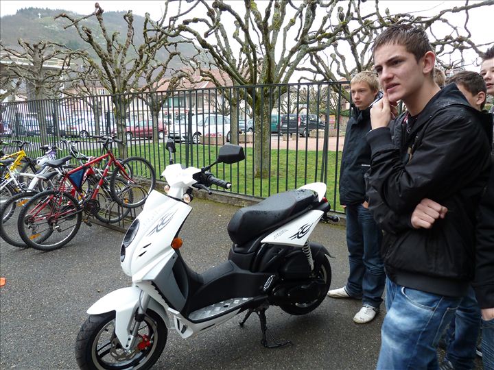 Pour les 5èmes, il s'agissait d'une animation de deux heures, menée par Mme Muriel Dietmann, basée sur la sécurité routière aussi bien des piétons, des rollers, des cyclistes ou des deux roues. Les 3èmes, quant à eux, ont pu profité durant 2h de quatre ateliers, le jeudi 31 mars: un atelier conduite d'un cyclomoteur sur parcours, mené par l'Auto-Ecole Sport; un atelier entretien d'un cyclomoteur, animé par le garage KTM/Kuttler; un atelier de simulateur de deux roues, organisé par la Macif Prévention; un atelier d'information sur les lois en vigueur, mené par la Gendarmerie de Thann. |