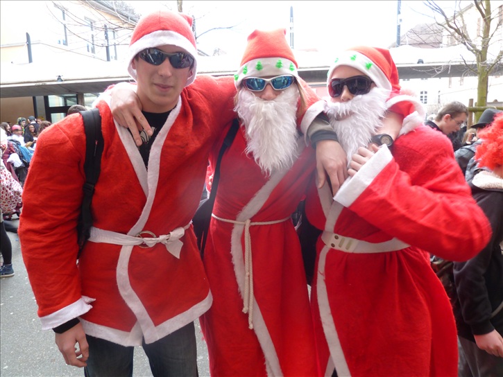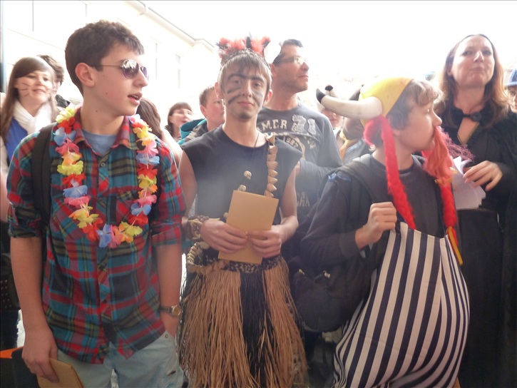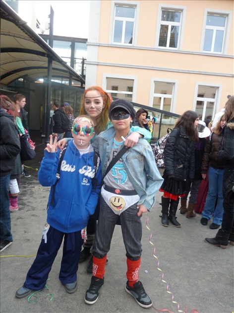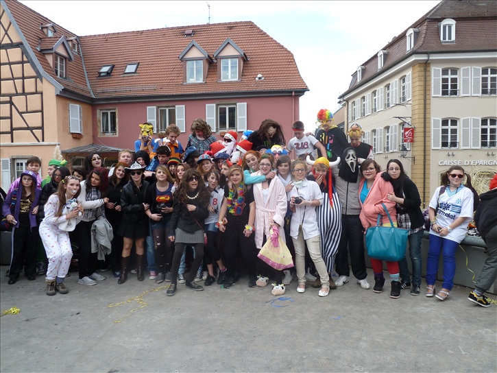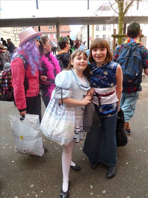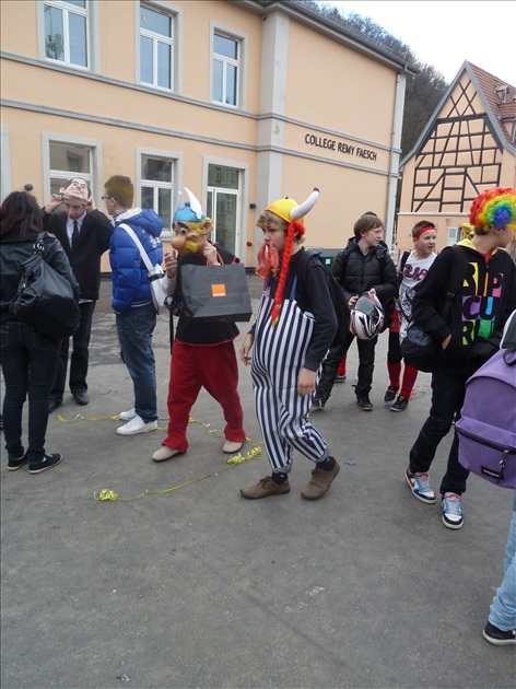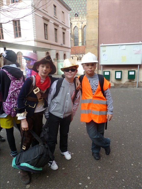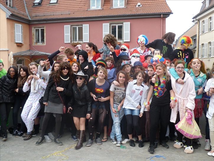 Malgré les apparences, les cours de l'après-midi se sont déroulés dans une ambiance studieuse à l'intérieur des salles de classe... Celles-ci étaient juste un peu plus "colorées" que d'habitude... Bien entendu on saluera, comme il se doit, l'imagination (et le courage) des participants, sans oublier les enseignants, qui ont su faire cours en restant stoïques devant un tel public... |