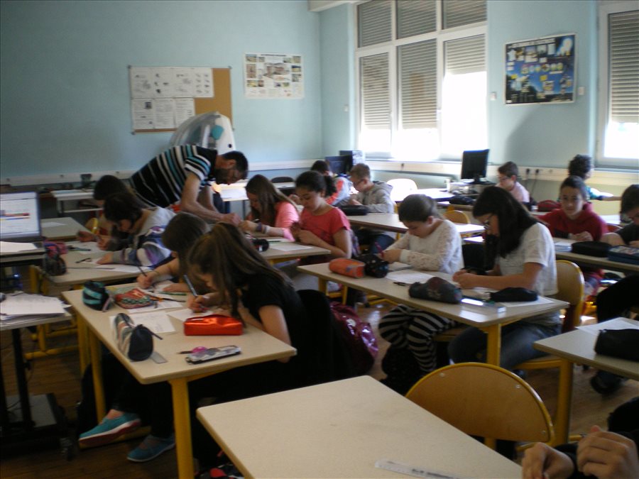 Des ateliers avaient été organisés pour les faire travailler avec des élèves de 6ème : découverte de la danse, de l'escalade, un concours de grammaire, des constructions géométriques, un atelier d'arts plastique pour réaliser un tableau avec ces constructions, un jeu de piste en allemand, des jeux en anglais pour apprendre à nommer les différentes parties du corps. |