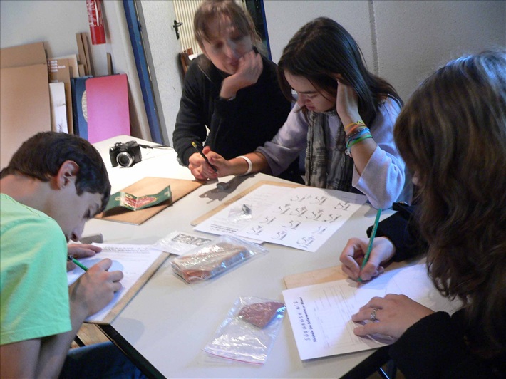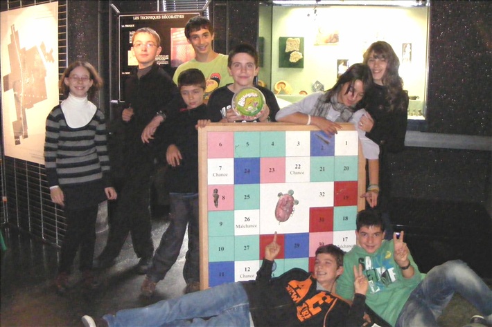 | Dans le Musée Gallo-romain, Marie-Hélène Hafil, l’animatrice, leur a proposé une visite guidée. Puis, au cours d’un jeu de l’oie très interactif, chaque groupe a dû retrouver dans les vitrines les réponses aux questions : les vainqueurs ont généreusement partagé leur trophée – des friandises- avec leurs camarades. Pour finir, Caroline, l’autre animatrice, leur a proposé un atelier-archéo qui leur a permis, comme des archéologues, de manipuler observer et dessiner de vrais objets provenant des fouilles sur le site. |