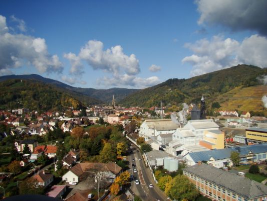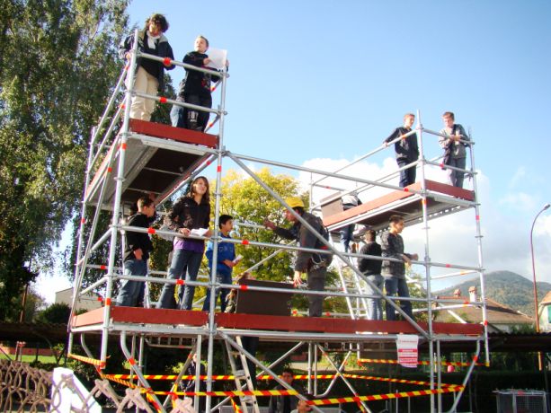 Ils ont pu découvrir les différents stands présentant les métiers de la chimie ou bien passer aux commandes des engins exposés. Les élèves volontaires ont également pu monter en haut d'une nacelle téléscopique pour admirer le site de la chimie, la ville de Thann et même les toits de leur collège... |