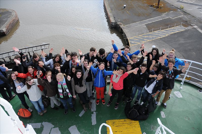 Samedi 4 mai Départ de Thann à 7 h pour rejoindre le port de Zeebrugge, en Belgique. Hier, c'était l'anniversaire de Lauriane. Elle a prévu des gâteaux pour tous! Nous embarquons sur le Pride of York, pour une traversée de 14 heures. Le ferry nous appartient. Nous ne sommes que 250 passagers sur un bateau qui peut contenir près de 1000 personnes. Nous mangeons, dansons, discutons et finalement rejoignons nos cabines pour dormir.