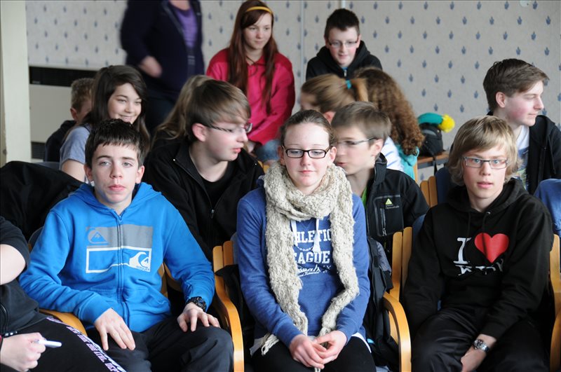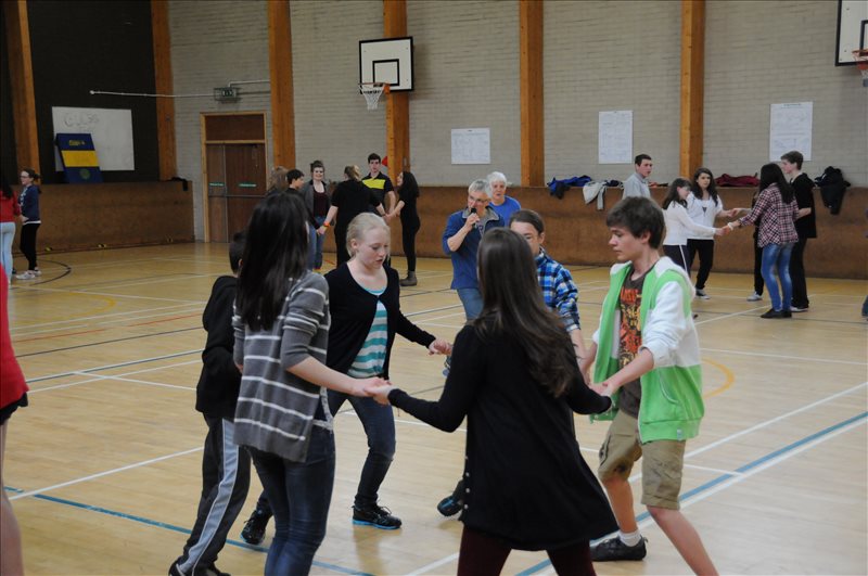 Lundi 6 mai C'est un jour férié en Grande Bretagne: "Bank Holiday". Nous profitons de la matinée pour nous reposer. A 12h30, tout le monde se retrouve à l'école, à Golspie, autour d'un magnifique buffet, préparé par les parents, qui sont aussi de la partie. Nos professeurs nous disent de ne pas rester dans notre coin et de nous mêler aux Écossais. Mais c'est difficile. Ils sont exigeants! Après le repas, Mme MacLean, professeur de français écossaise, et son mari, nous initient aux danses écossaises, dans la salle de sport. Après un peu de confusion au début, nous nous mettons dans le rythme. Et bientôt, nous nous laissons guider par nos correspondants et nos danses prennent de l'allure. |