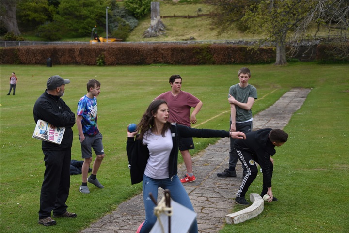 10 Mai Highland games organisés pour tout le collège en l'honneur de notre visite. Avant les épreuves nous avons paradé autour du terrain de sport en suivant le groupe de cornemuse du collège. Il y avait des épreuves "sérieuses" Mots du jour: saut en hauteur - saut en longueur - 100 mètres - lancer de poids - relais Il y avait aussi des épreuves amusantes. Mots du jour: lancer de haggis (panse de brebis farcie) - lancer de bottes en caoutchouc (essayez, vous verrez que ce n'est pas évident!) - course à trois pieds ( on attache les pieds de deux concurrents) - vélo lent (il faut rouler le plus lentement possible) - ski à 5 personnes sur une planche ( cela demande beaucoup de coordination) - tir à la corde - course en sacs - course cuiller et pomme de terre ( il s'agit de porter un pomme de terre sur un cuiller sans la faire tomber) L'après midi, nous avons participé à des activités en cours. A Golspie, nous avons commencé par des expériences de chimie. Ensuite, nous avons découvert les salles de musique et avons été initiés à quelques morceaux simples. Que d'instruments dans ces salles! Ceux qui étaient à Dornoch ont confectionné des shortbread dans la salle d'économie domestique car dans les collège en Écosse on apprend à cuisiner et équilibrer les repas. Mots du jour: hydrogène - explosions - piano - guitare - xylophone - batterie - pâtisserie - shortbread - farine - beurre - levure - lait - bonnes odeurs de pâtisserie.