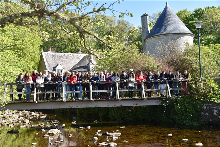 15 Mai Le loch Ness. La visite tant attendue! Nous ne pensions pas que le lac était si grand. Nous avons visité Urqhart Castle, le château tant photographié, le cliché connu dans le monde entier. Mots du jour: ruines - tours - lac bleuté - herbe verte - moutons - catapulte - souvenirs d'affrontements entre clans. Loch Ness exhibition centre: monstre ou pas monstre? That's the question! Plongée dans le loch pour comprendre son écosystème, la géologie de cette faille où repose le lac, et aussi découvrir les différentes expéditions mises en œuvre pour trouver le monstre. Mots du jour: monstre - eaux tourbeuses - esturgeons - sonars - bathyscaphes - canulars - attraction touristique. Inverness: deux heures de shopping dans la capitale des Highlands. L'occasion d'acheter des souvenirs pour la famille et aussi de tester son vocabulaire. Mots du jour: centre commercial - souvenirs écossais - emplettes 16 Mai Landmark: parc forestier avec des attractions. Les correspondants Ecossais nous ont accompagnés. Nous avons discuté, échangé, profité des animations ensemble. Cette journée tous ensemble a beaucoup plu à tout le monde. maintenant que nous nous connaissions mieux et que nous avions l'habitude de parler en anglais, la communication était plus aisée. Côté nature: écureuils - oiseaux - nichoirs - arbres - dôme tropical - papillons - cailles Côté amusement: grand huit - toboggans avec chutes d'eau - saut à l'élastique - parcours d'arbre en arbre - labyrinthe - escalade - illusions d'optique 17 Mai Dernier jour déjà! Et anniversaire d'Elisa Dunrobin castle: Le château de Golspie. Nous nous y sommes rendus à pied, en longeant la mer et en effectuant un petit détour par les bois pour admirer les jacinthes sauvages qui tapissent de bleu les sous bois à cette période du printemps. C’était très beau! Mots du jour:mer bleu foncé - prés verts - algues vertes et brunes - rochers - oiseaux - sous bois - vert tendre des jeunes feuilles - jacinthes bleues Nous avons visité le château. Il appartient à la famille des ducs de Sutherland et sa partie la plus ancienne date de 1300. Le mobilier date de l'époque victorienne. Mots du jour: château - période victorienne - trophées de chasse - argenterie - livres anciens - portraits de famille - plafonds hauts - vue sur la mer - jardins à la française A l'heure du déjeuner, petite expérience bien britannique. Nous avons acheté nos repas au "chippy" et avons mangé sur la plage de Golspie. Mots du jour: fish and chips - scampi and chips - chicken and chips - beefburger and chips. L’après midi, deux courageux ont fait la "Burn walk" avec M. Arnould pour aller voir une cascade d'eau tourbeuse dans un petit vallon encaissé dont les parois rocheuses sont tapissées d'ail des ours. Quelques uns sont allés à la piscine et les autres ont simplement joué et paressé sur la plage, et profité du temps chaud et du soleil radieux.