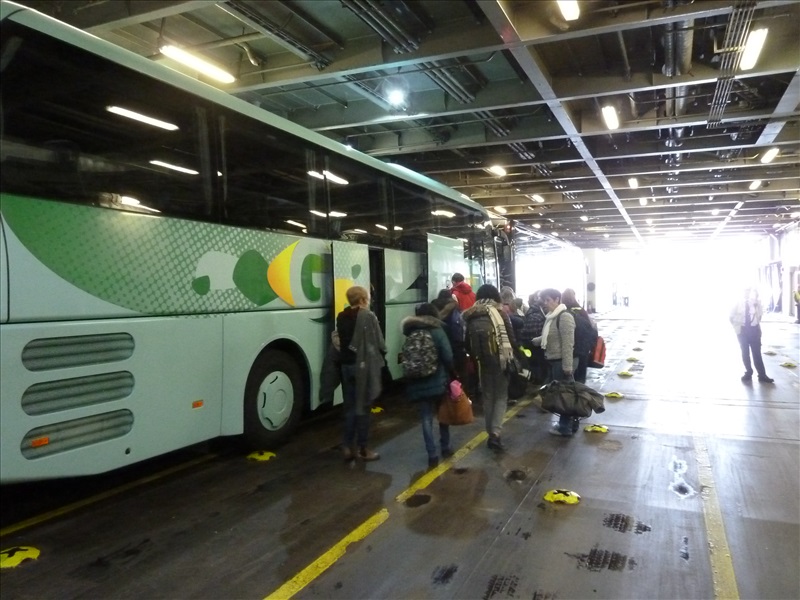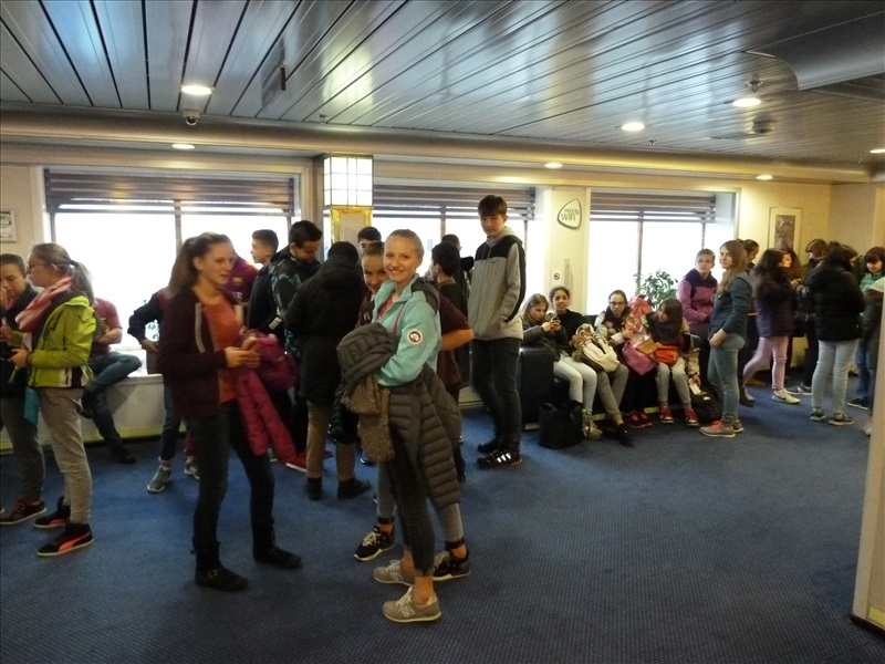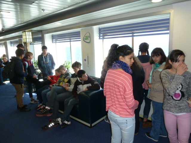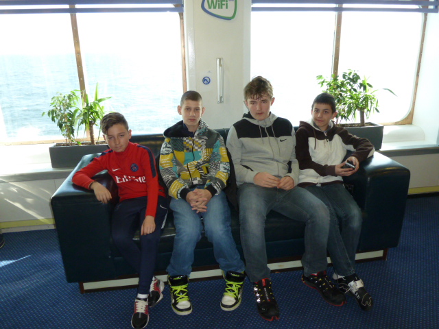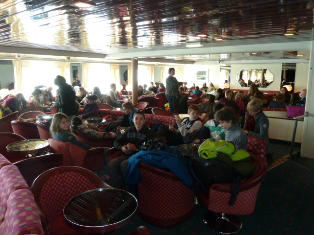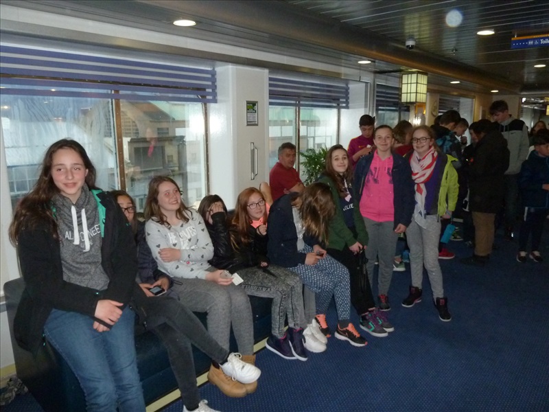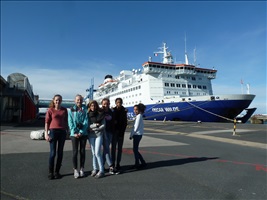 Grasse matinée pour la plupart. Petit déjeuner et petite promenade sur le pont. il y avait beaucoup de vent. A 14 heures, nous avons débarqué à Rosslare. Nous avons traversé l'Irlande d'est en ouest pour nous rendre à Galway où nous attendaient les familles d'accueil. |