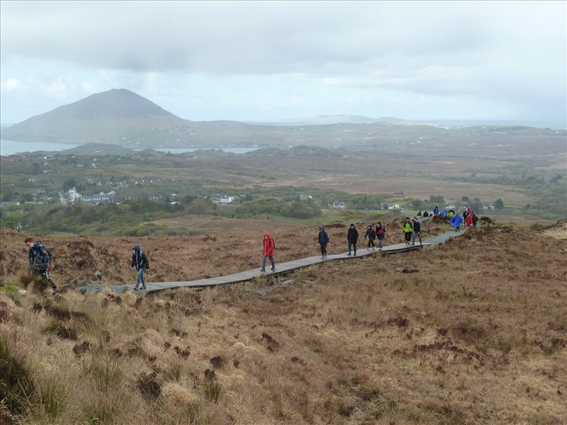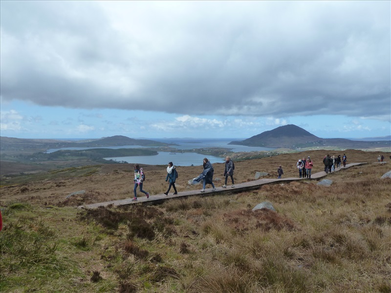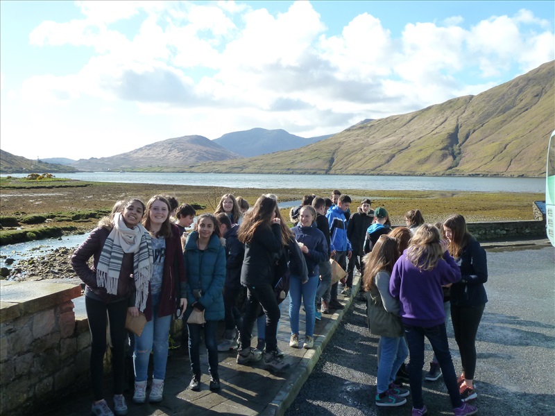 Nous sommes partis à la découverte du Connemara. Nous avons sillonné des routes pittoresques en écoutant et en reprenant en cœur "Les lacs du Connemara" de Michel Sardou. Nous avons fait un arrêt à Clifden, une ville touristique. En fin de matinée, nous nous sommes rendus au "Connemara National Park visitor centre" pour découvrir une exposition sur la tourbe et la nature. Ensuite, nous avons fait une balade dans la lande, bien arrosée au début, pour découvrir une vue magnifique sur la côte sauvage. L’après midi,au "sheep and wool centre", on nous a expliqué le travail de la laine, depuis la tonte des moutons jusqu'aux jolis pulls à motifs irlandais. |