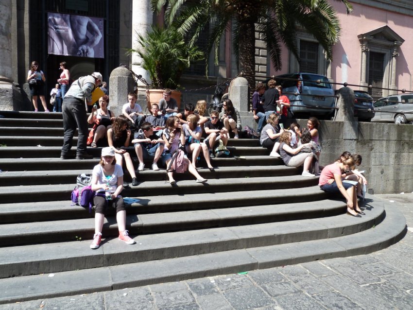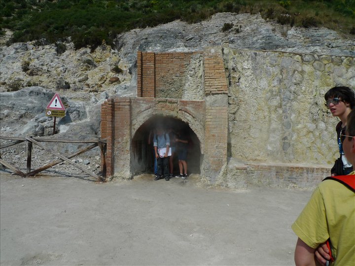 Mercredi, visite guidée de Pompéi et de la fameuse Villa des Mystères, avant de marcher sur un cratère, la solfatara. Melle Mack au « speaker » leur a expliqué les phénomènes géologiques de cette région des champs phlégréens chantée par Virgile. |