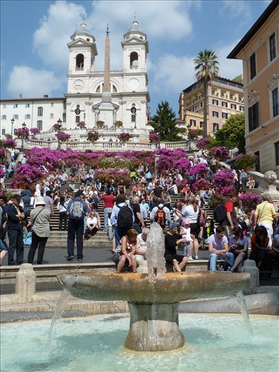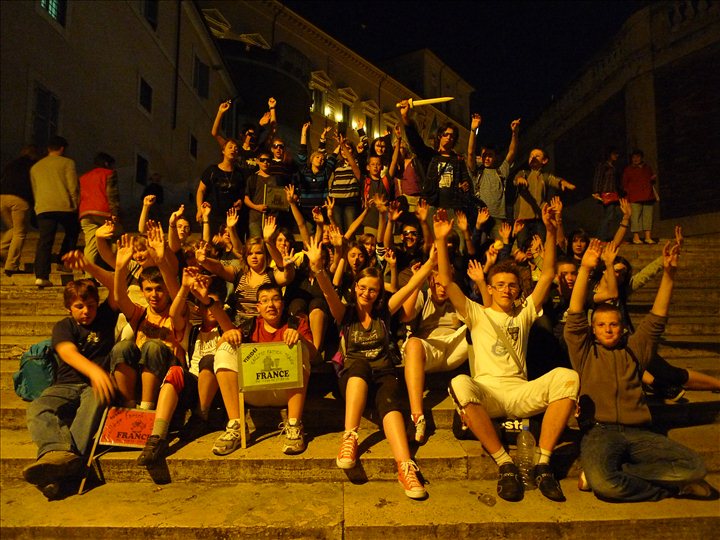 | Ils sont allés ensuite de place baroque en place baroque, pour en apprécier leur scénographie : la place d’Espagne et son escalier à 3 rampes couvert d’azalées roses, la Fontaine de Trevi et sa fraîcheur, le coucher de soleil sur la place du Quirinal après un dîner dans une charmante pizzéria « "La Fontaine de Vénus" où les jeunes ont été conquis par Omar le serveur. Pour finir, ils ont attendu leur car sur la place del popolo, illuminée, avant un retour nocturne. Au retour chacun est reparti avec son pochon de mozzarella de la CREMERIA DI LASCIO DAVIDE. |