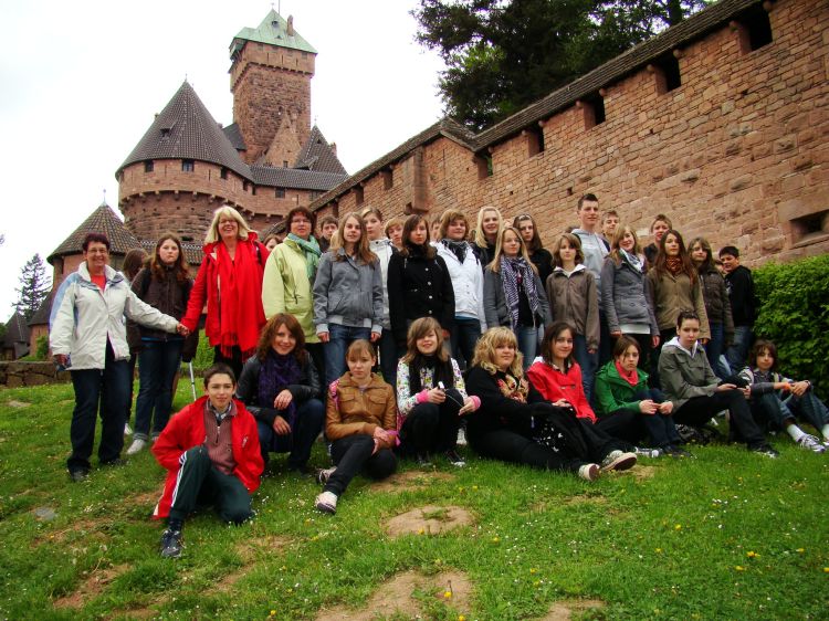 Les Collégiens allemands ont séjourné dans les familles de nos élèves du 3 au 7 mai 2009 en compagnie de leurs professeurs Madame FOLGER-SCHWAB et Madame FREUNDT-FEHRENBACHER. Au programme figuraient entre autres : la visite guidée du Haut-Koenigsbourg, un passage d’imprégnation sociologique par la montagne des singes, le zoo de Mulhouse, la montée vers l’œil de la Sorcière et la visite de Thann guidée par Monsieur ROHMER. |