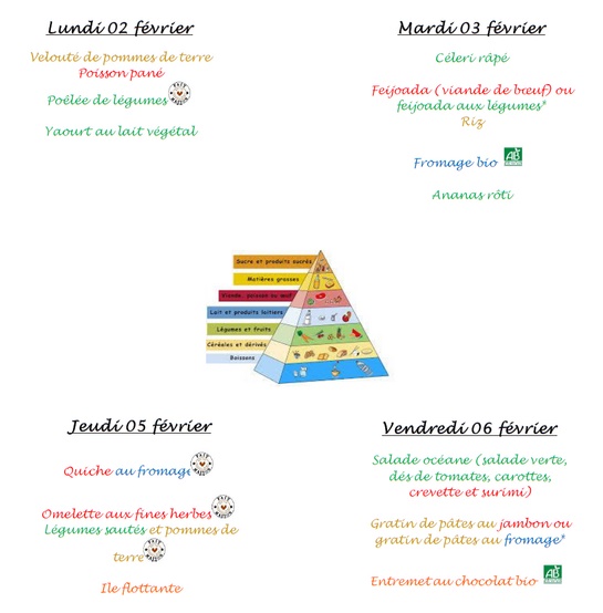 Menu de la semaine du 2 au 6 Février |