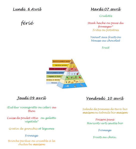 Menu de la semaine du 7 au 10 Avril |