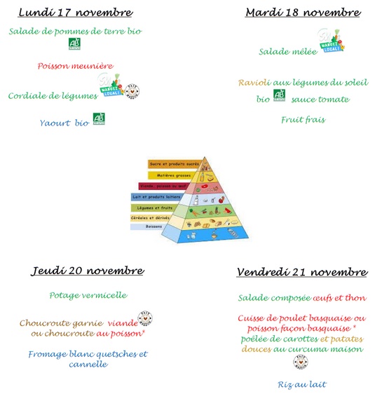 Menu de la semaine du 17 au 21 Novembre |