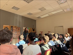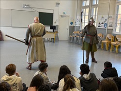 Le jeudi 15 janvier, les trois classes de 5ème ont eu la surprise de faire un saut dans le passé, au moyen-âge plus précisément. Grâce à Reinhardt et à Brunehild, ils ont pu apprendre comment un château alsacien était attaqué et défendu, comment on vivait à cette époque (et revoir bon nombre d’idées reçues à ce sujet), comment on se soignait ; ils ont aussi décrit des blasons et assisté à des combats. Selon les élèves, la journée fut intéressante et drôle ! |